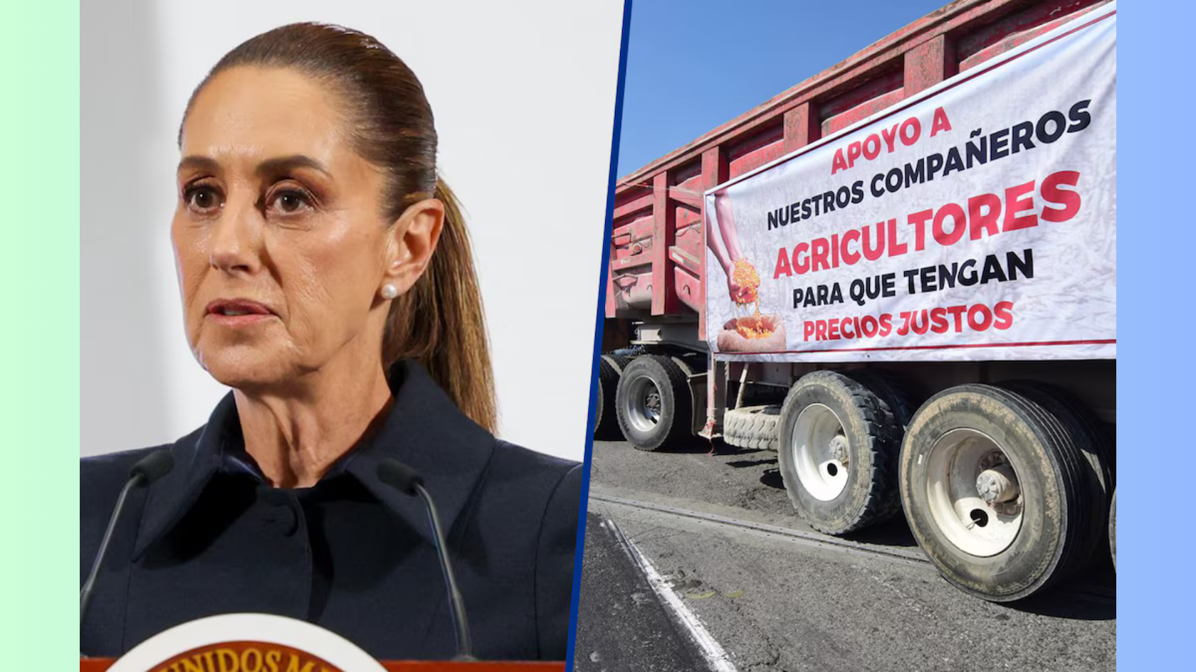 La mandataria explicó que las demandas del sector agrícola derivan de la caída en los precios del maíz, frijol, sorgo, trigo y otros granos, asociada a una sobreoferta a nivel mundial. En este contexto, los productores han solicitado al Gobierno de México compensaciones por la disminución de sus ingresos.