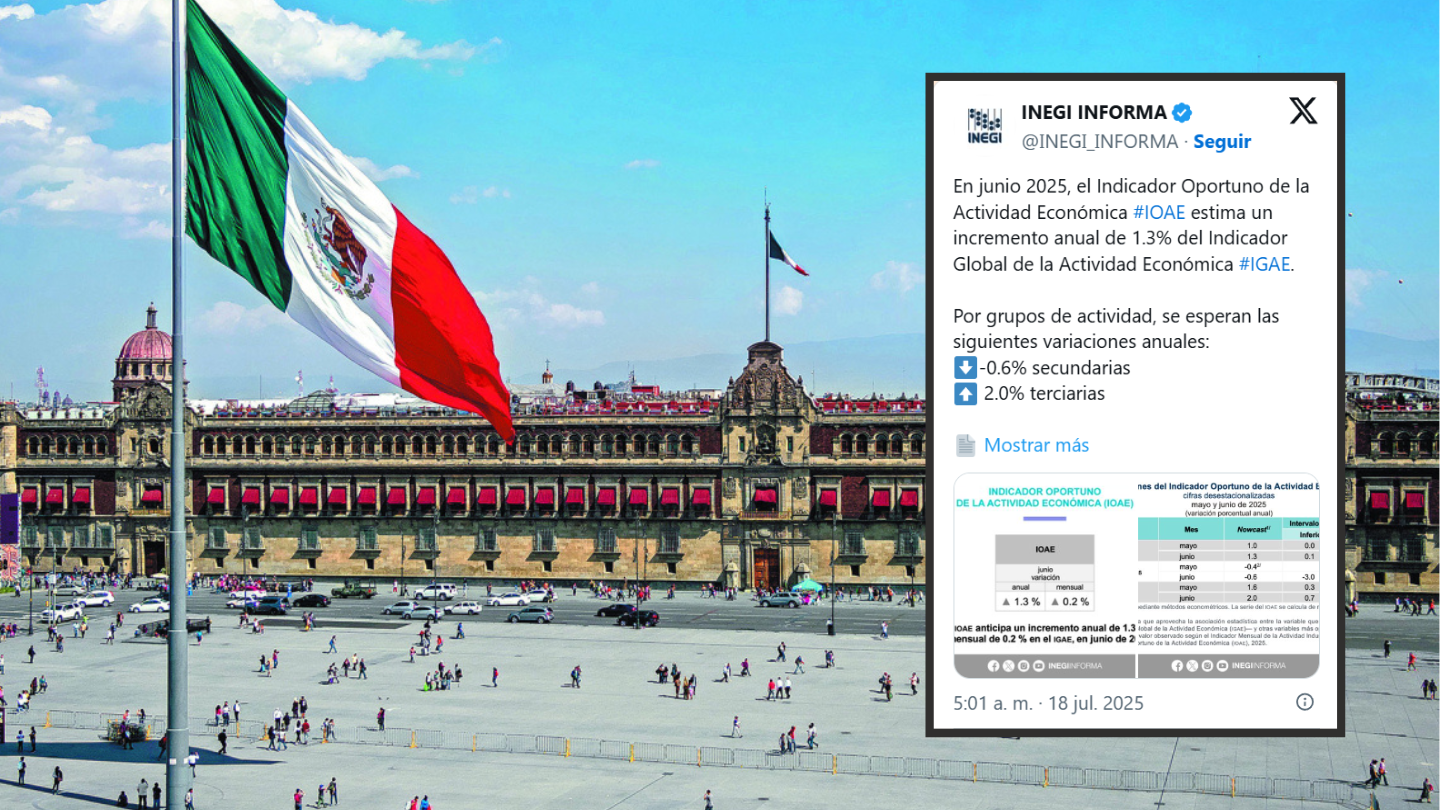 La economía mexicana registró una nueva desaceleración durante junio, de acuerdo con los datos publicados este viernes por el Instituto Nacional de Estadística y Geografía (Inegi). El Indicador Oportuno de la Actividad Económica (IOAE) estimó un crecimiento mensual de 0.2%, lo que representa el segundo mes consecutivo con una menor expansión, luego de avances de 0.5% en abril y 0.3% en mayo.